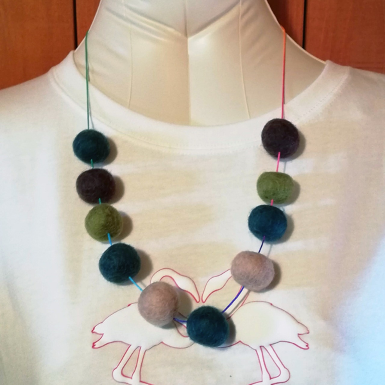 ハンドメイド【039】カラフル・フェルトボールネックレス