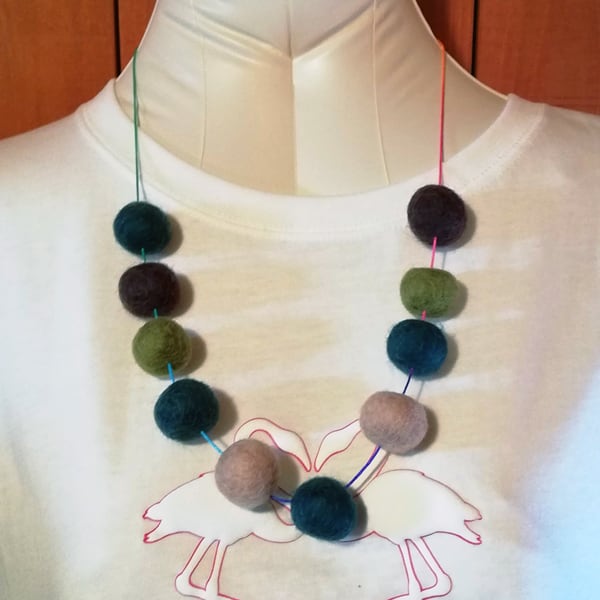 とてもカラフルでかわいい、フェルトボールのハンドメイドネックレスです!