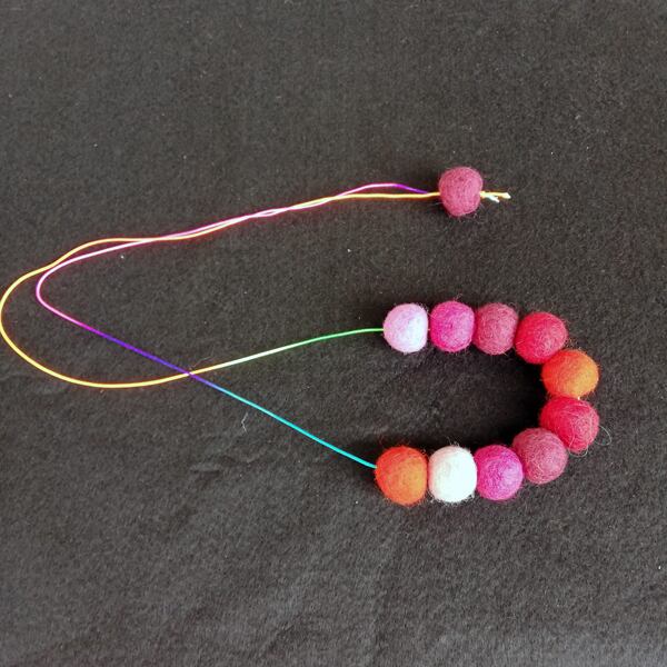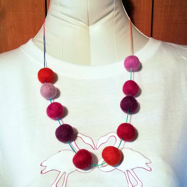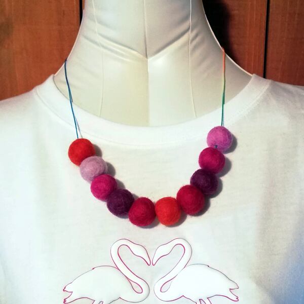 とてもカラフルでかわいい、フェルトボールのハンドメイドネックレスです!