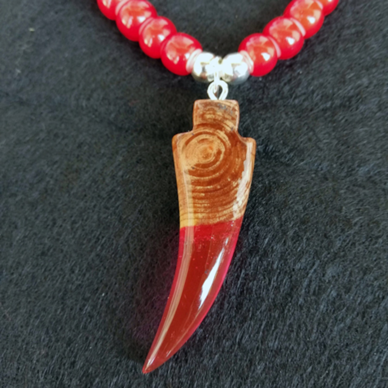 【ハンドメイド033】【赤牙】 流木エポキシ・ホワイトハーツ・ネックレス